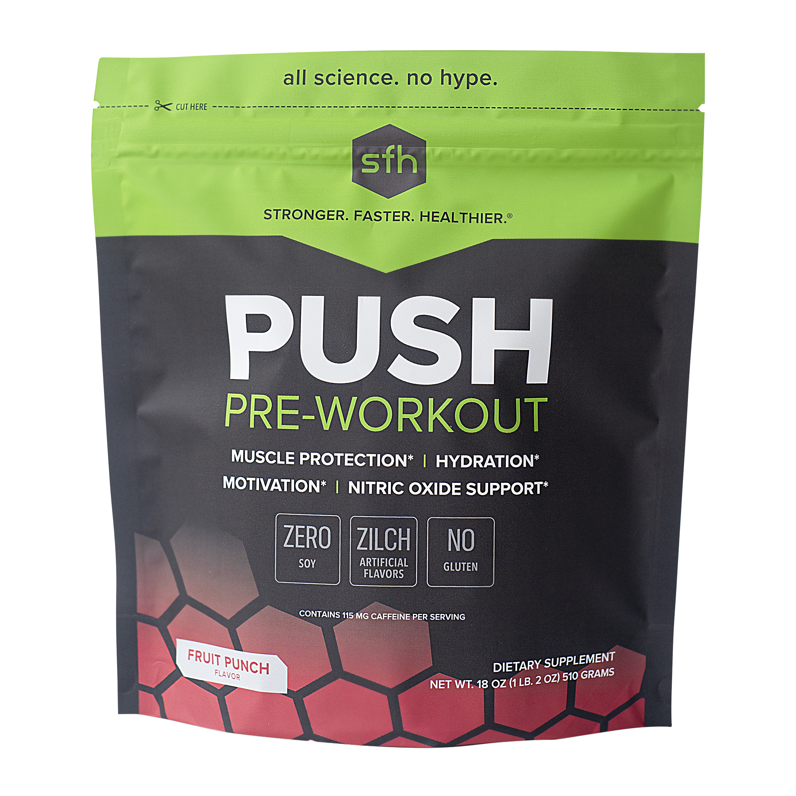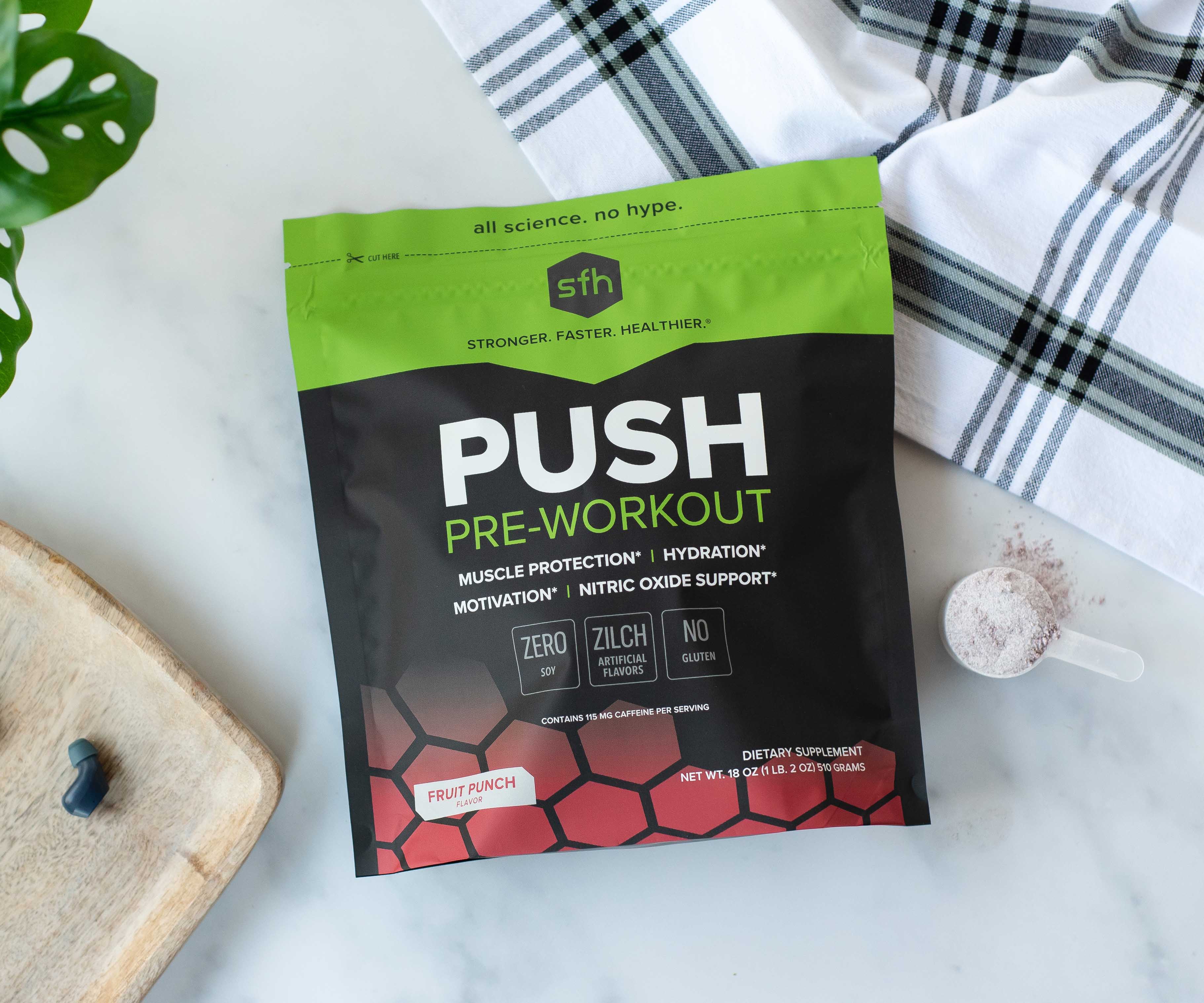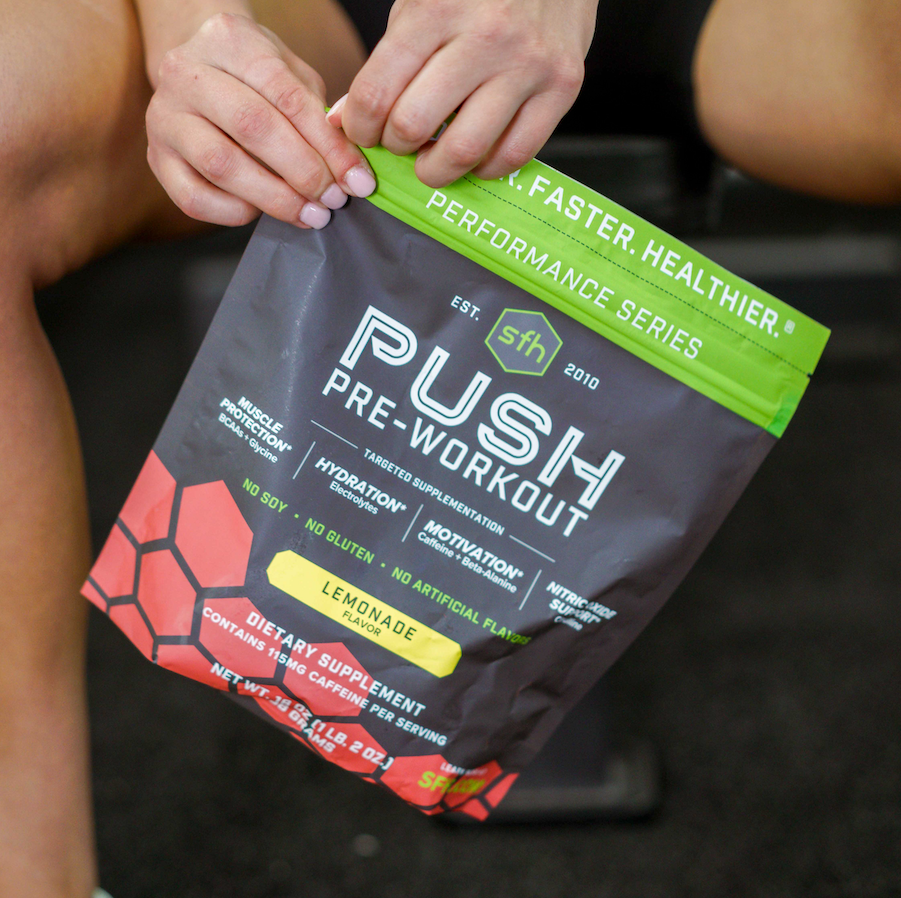 PUSH is the only pre-workout scientifically formulated to help boost your athletic performance, every single workout. PUSH has several key ingredients to support your energy levels, fight fatigue, optimize your hydration, support muscle growth, combat soreness, and aid in your recovery.