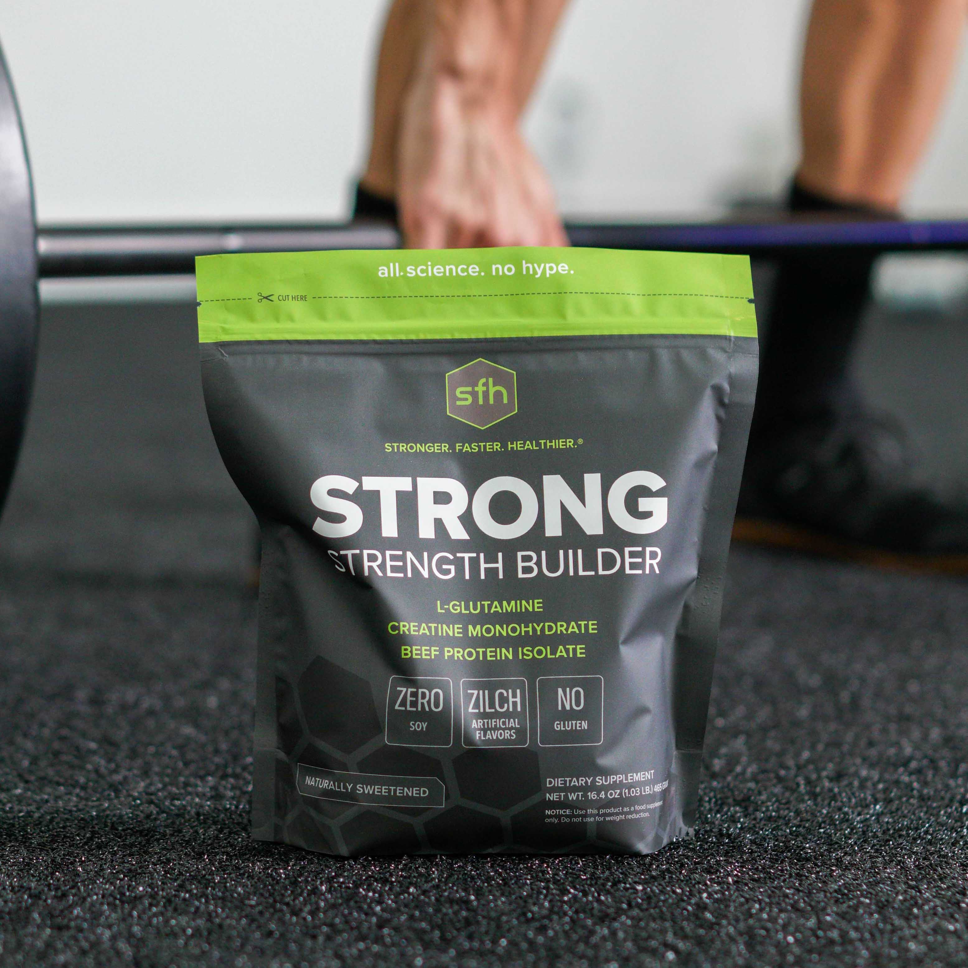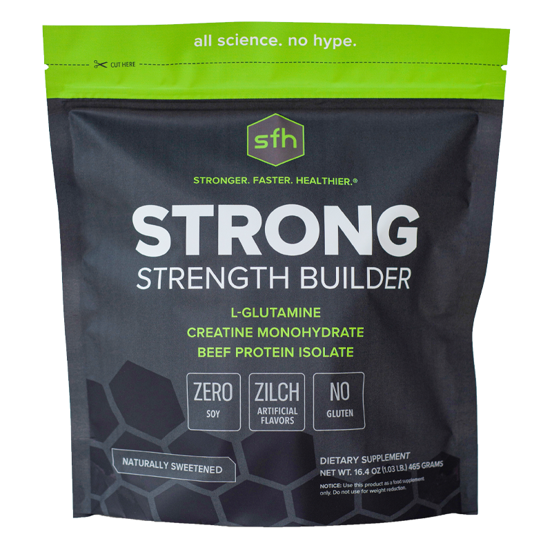 STRONG is for those looking to maximize their muscle and strength building results. It's formulated to go above and beyond Creatine alone, using it's special combination of Creatine + L-Glutamine + HydroBEEF™ to deliver an effectiveness not found anywhere else.