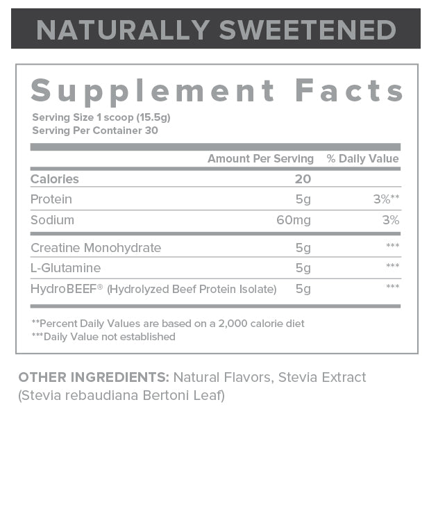 5 grams of HydroBEEF®, Creatine, and L-Glutamine each.