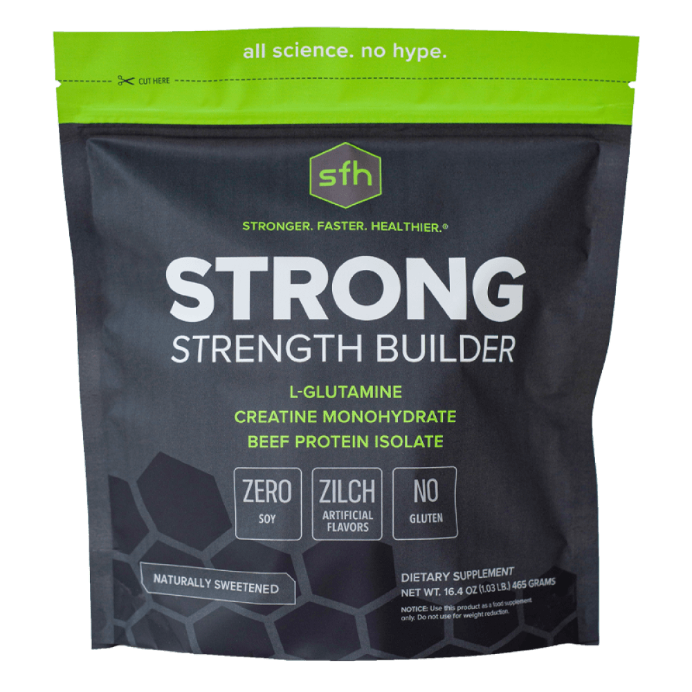 STRONG contains the 3 key ingredients Creatine, HydroBeef™ (beef isolate), and L-Glutamine. STRONG is designed to increase the effectiveness of your favorite SFH whey protein, or it can be used on it's own as a non-dairy option. STRONG helps maximize strength and muscle building results.